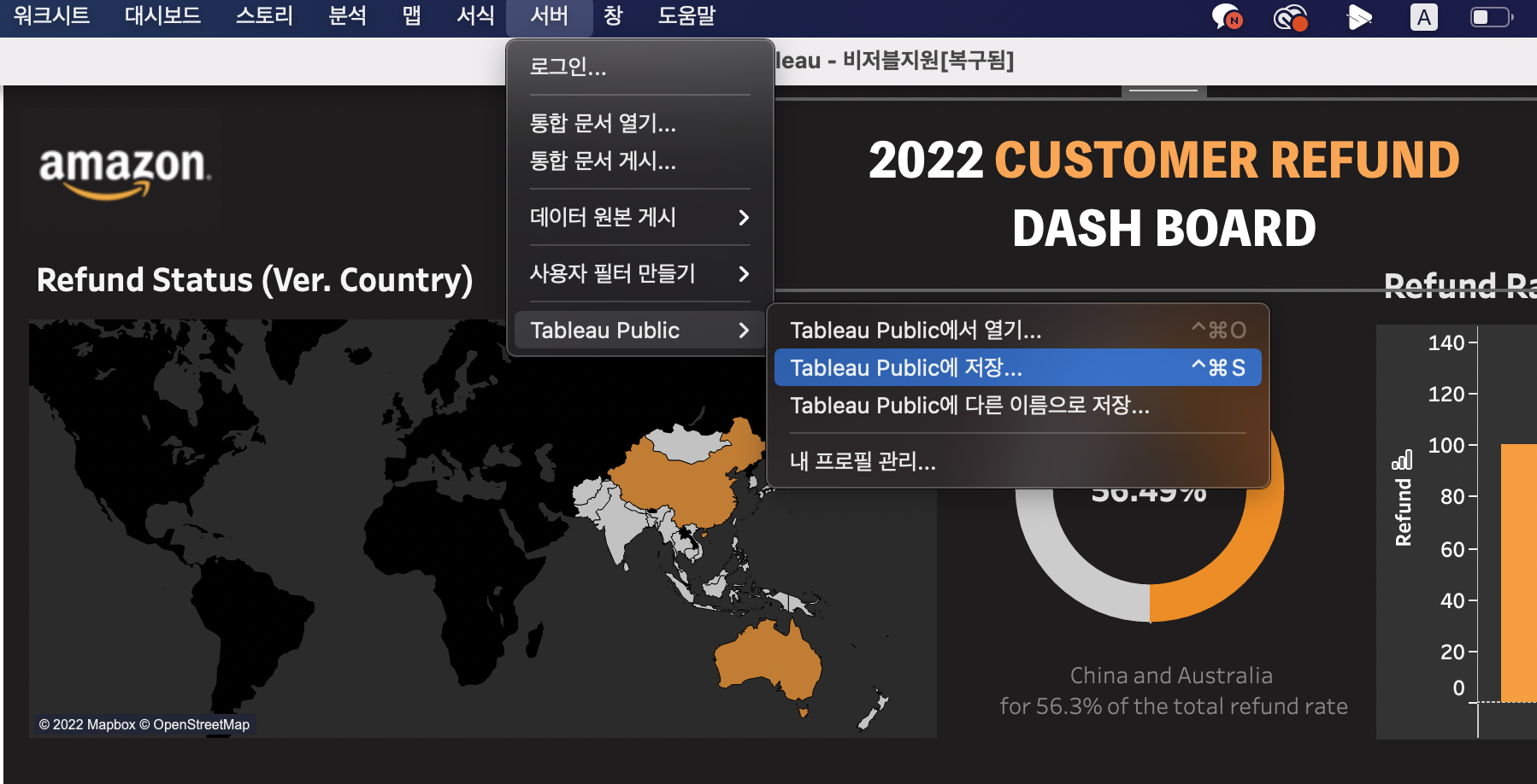 tableau public 프로필에 가보시면 제대로 업로드 된것을 확인 하실수있습니다!!