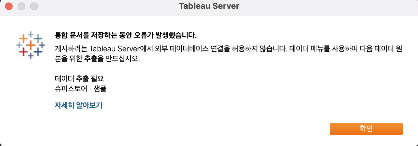 데이터 추출 필요" 메시지가 Tableau Online에 게시할 때 나타남 | Tableau Software