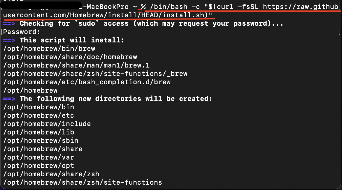 위 사진과 같이 homebrew버전이 잘 나오면 설치가 완료된겁니다!!!!