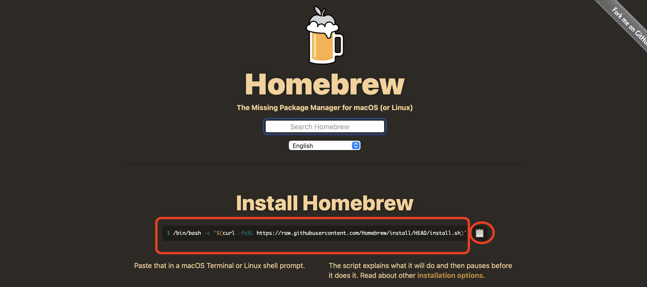 Homebrew홈페이지 주소: https://brew.sh