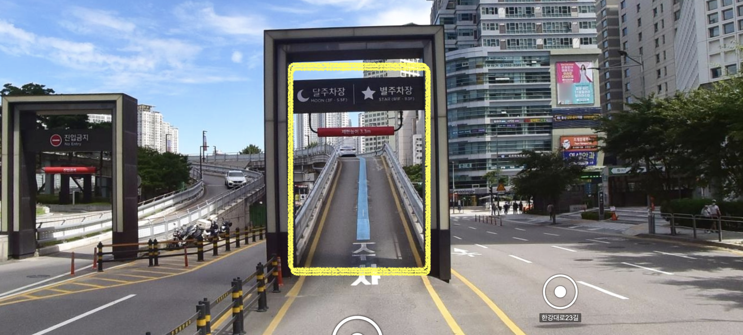 이번엔 용산역 정면으로 우측에 있습니다. 1차선으로 쭉 들어가시면 중간에 달 주차장으로 갈지 별 주차장으로 갈지 선택하시면 됩니다.
