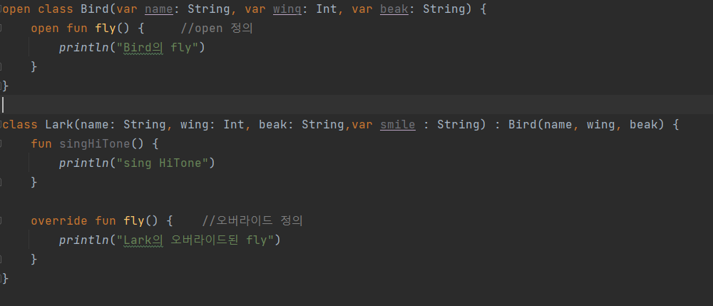 lark의 경우 기본적으로 Lark형이므로 val lark : Lark() 생략가능합니다